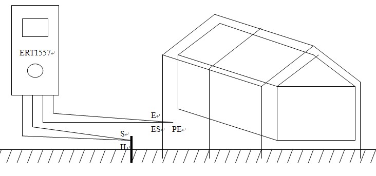 方法:將E與ES連接至被測(cè)接地樁同一位置,將S與H分別接至2個(gè)輔助地樁,間距大于5倍插入土壤深度。